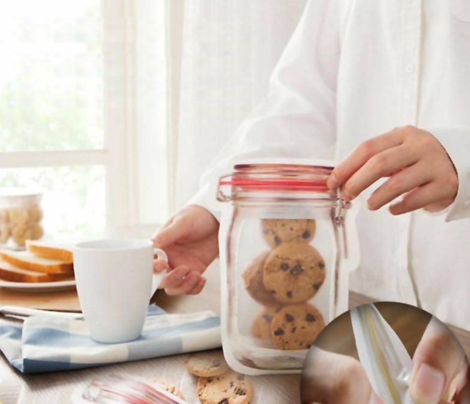 بدون استفاده از شیشه های سنگین و ظروف زیاد ، با کمک این زیپ لاک های باکیفیت و بهداشتی که با طراحی بسیار دوست داشتنی دارای شکل ظرف می باشد و زیبایی دکوراسیون را مینیمال و جذاب میکند. این زیپ لاک با ابعاد استانداردی که دارد میتواند از حبوبات ، شیرینی، مواد فریزری، مایعات و .... به خوبی نگهداری کنید. بدون هرگونه نشتی و جلوگیری از ورود آلودگی و گردو غبار . مناسب دانشجویان و مسافرت .